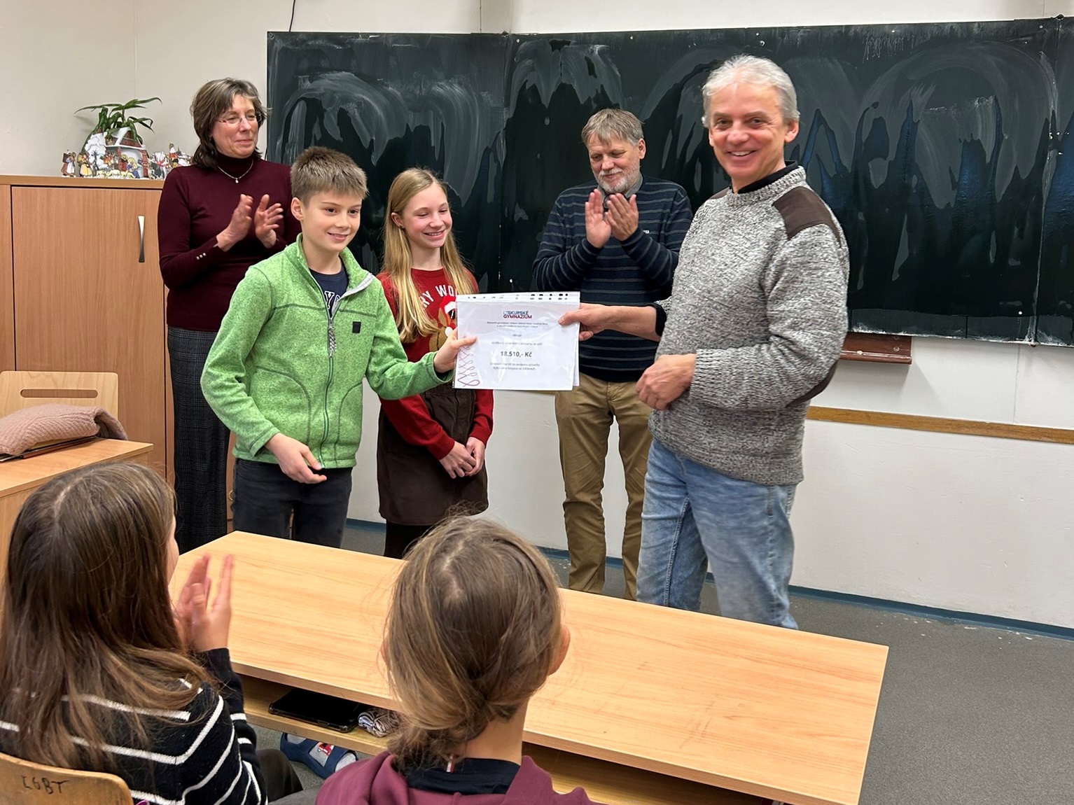 V naší fotogalerii naleznete obrazové ohlédnutí za letošním adventním koncertem, jehož výtěžek poputuje na hospicovou péči. Vybraný dar ve výši 18 510 Kč předali zástupci našich primánů řediteli Oblastní charity Hradec Králové Mgr. Vojtěchu Šůstkovi.