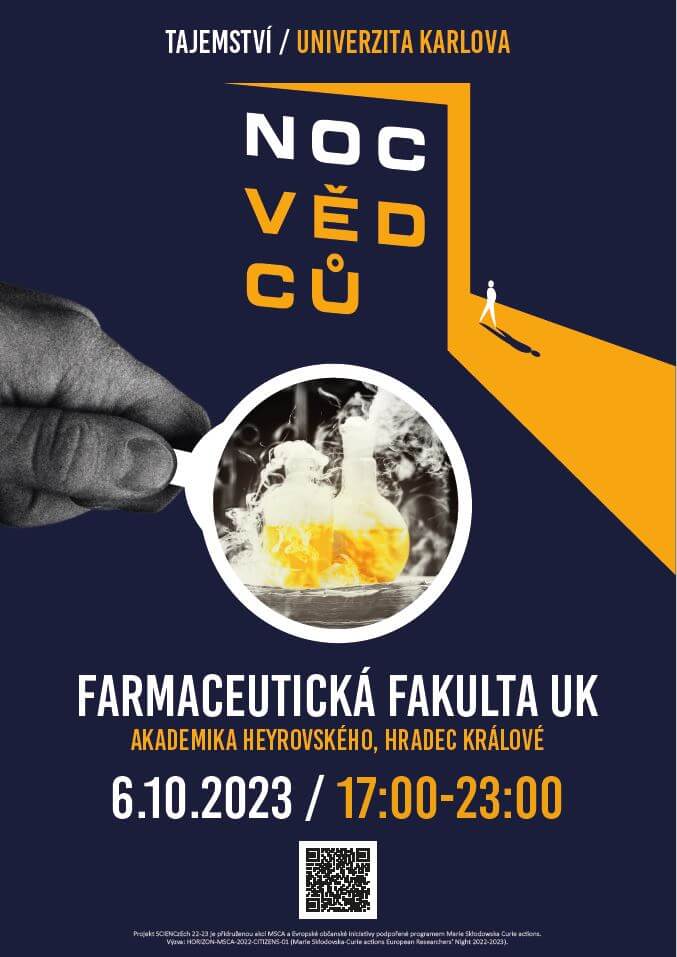 Sdílíme pozvánku na Noc vědců, pořádanou v pátek 6. 10. 2023 Farmaceutickou fakultou UK a dalšími institucemi nejen pro studenty. Plakát s programem na Faf UK naleznete níže. Pro více informací o celé akci navštivte její webové stránky.