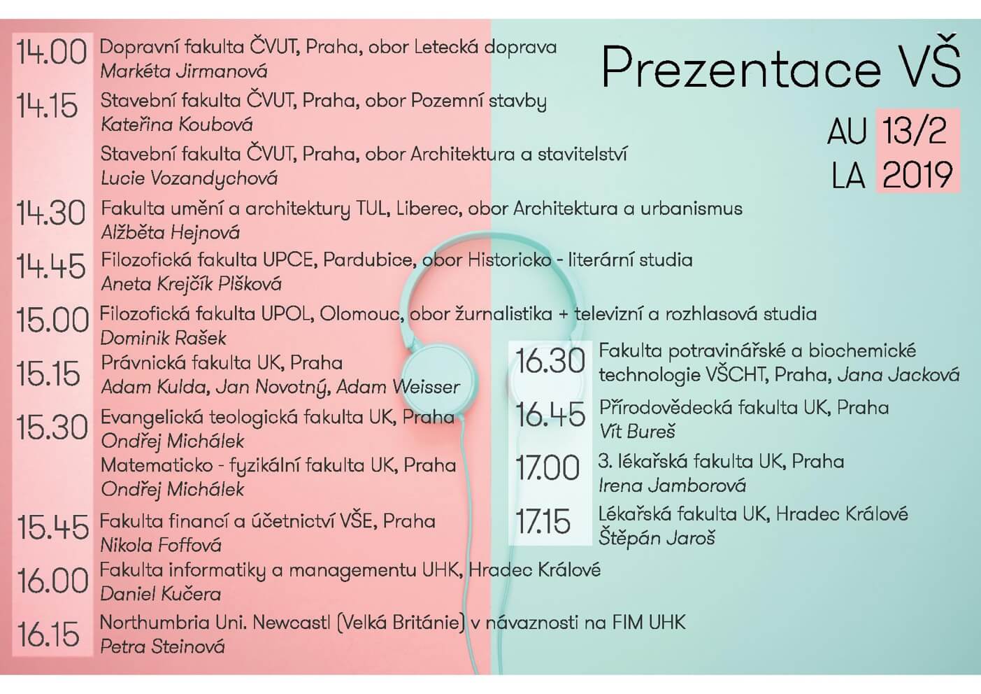 Pořadí a přehled prezentovaných škol si můžete přečíst zde: