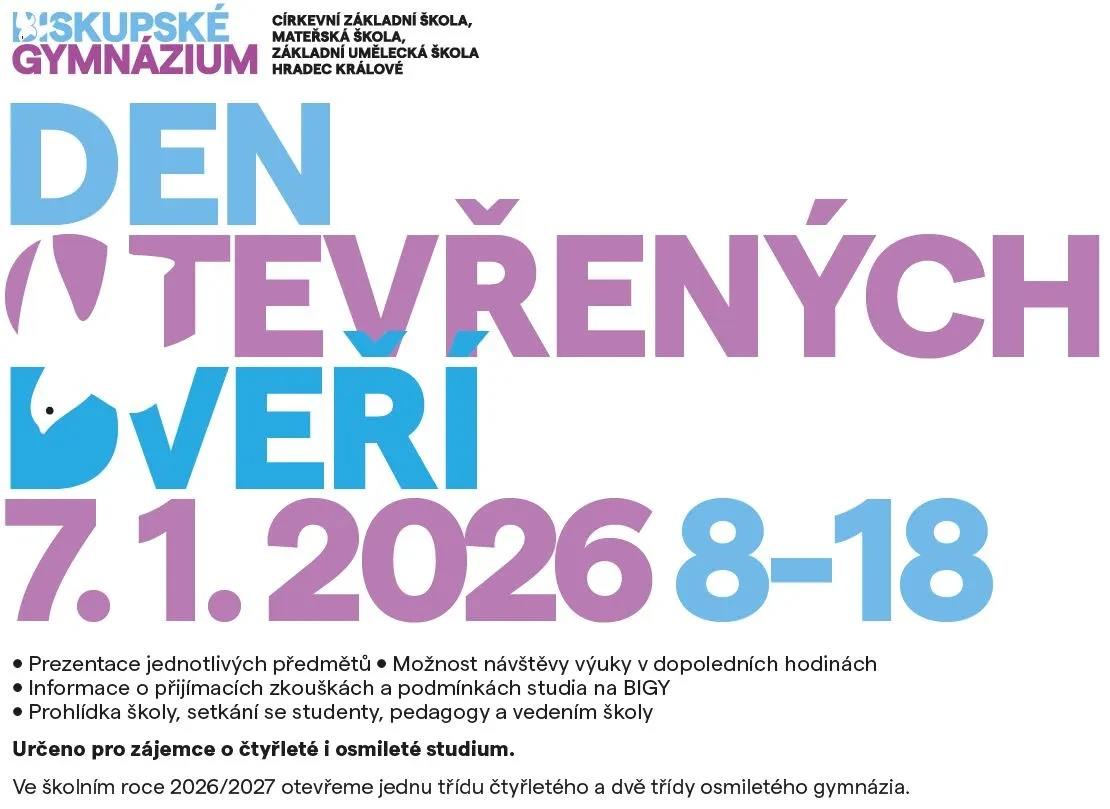 Těšíme se na všechny zájemce o 4leté i 8leté studium na našem gymnáziu již tuto středu 7. 1. v prostorách BIGY!