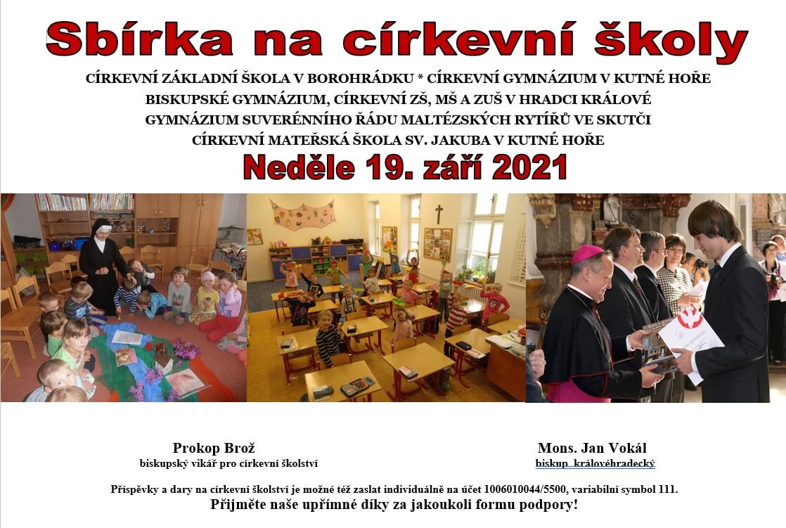 Nejbližší neděle je pak příležitostí finančně přispět ve sbírkách při všech bohoslužbách v naší Královéhradecké diecézi a podpořit tak církevní školy v jejich provozu a rozvoji.