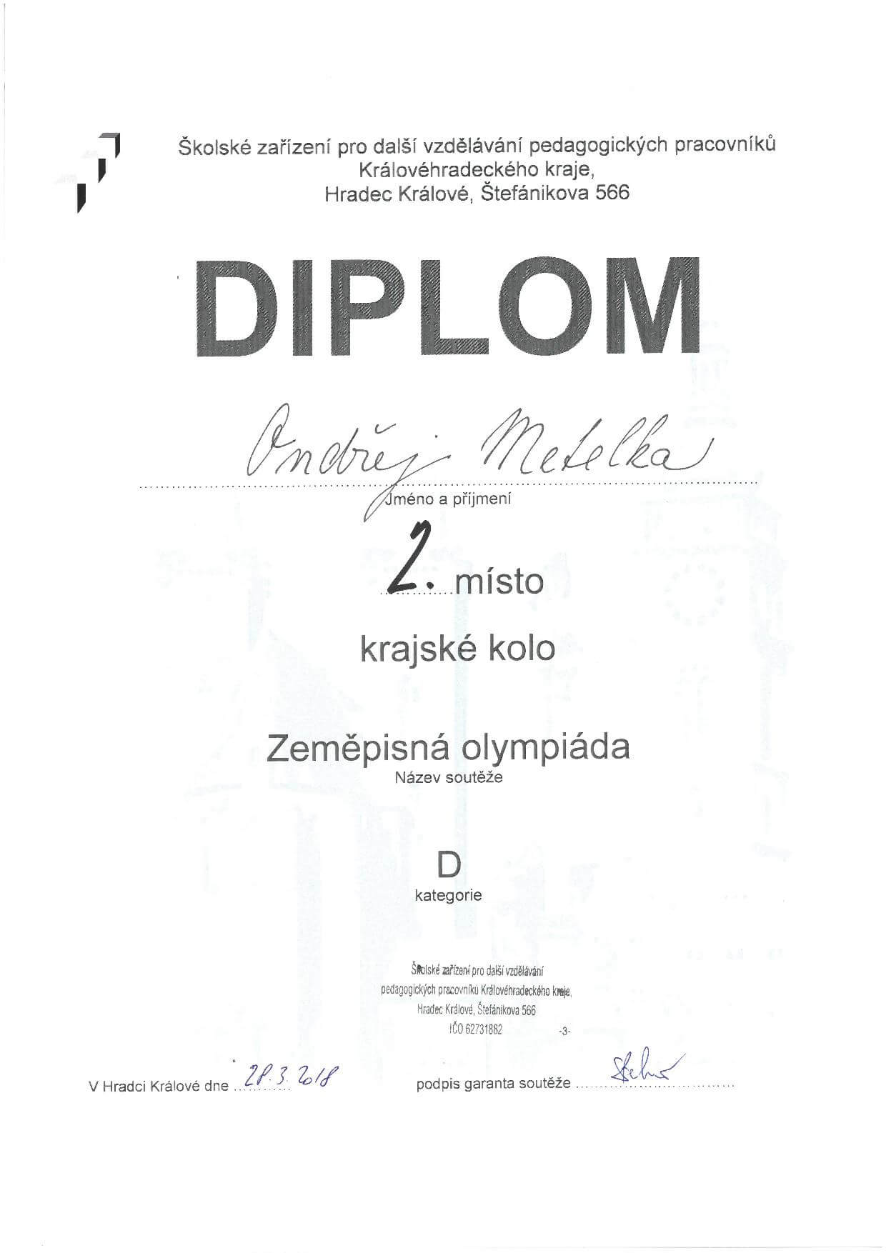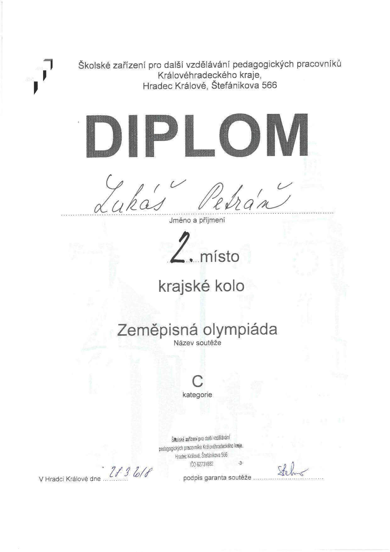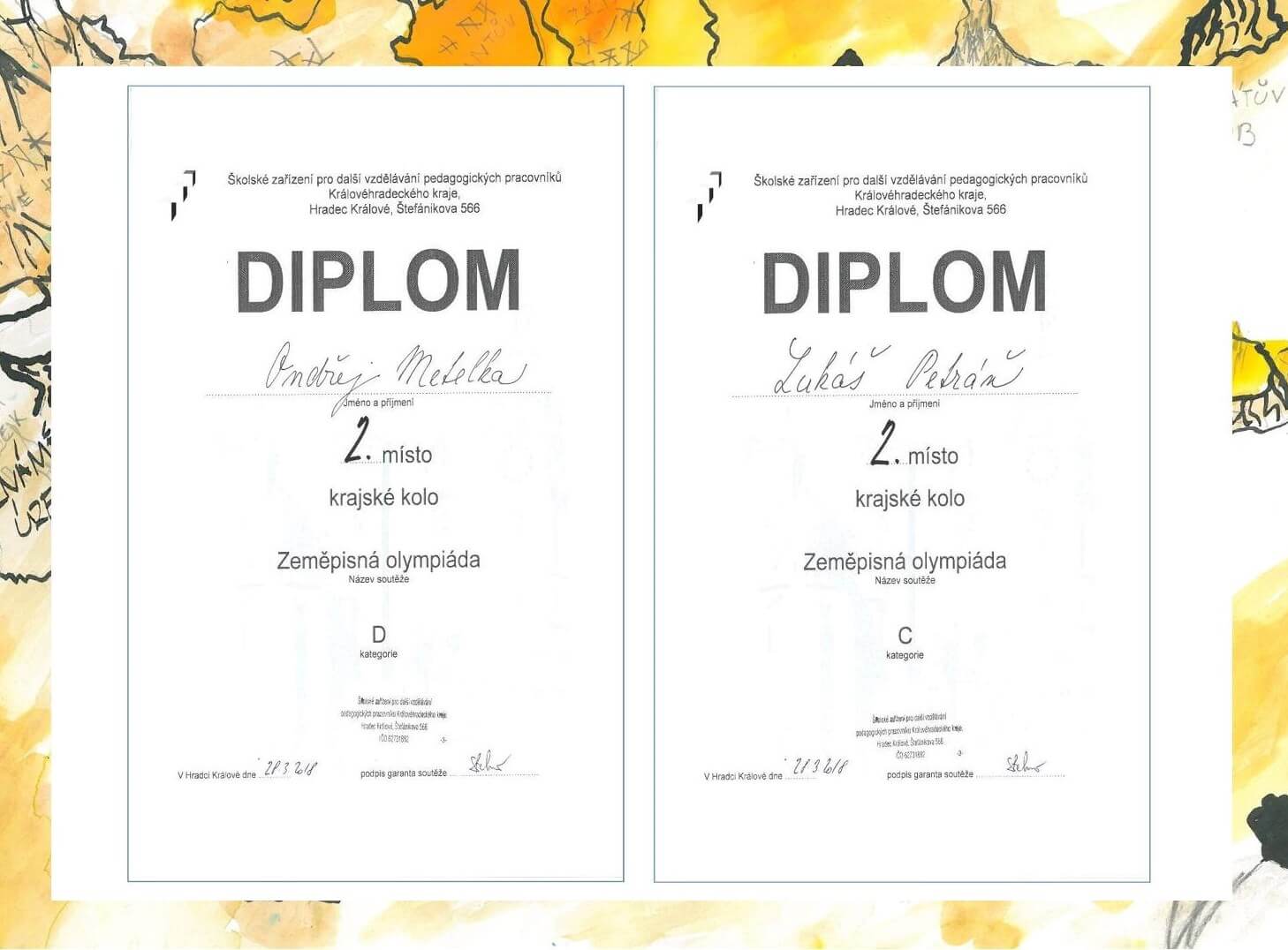 Velkého úspěchu dosáhli studenti Ondřej Metelka (6.A) a Lukáš Petráň (4.B), kteří se umístili na 2. místech Zeměpisné olympiády 2018 ve svých kategoriích. Děkujeme za vzornou reprezentaci školy a gratulujeme!